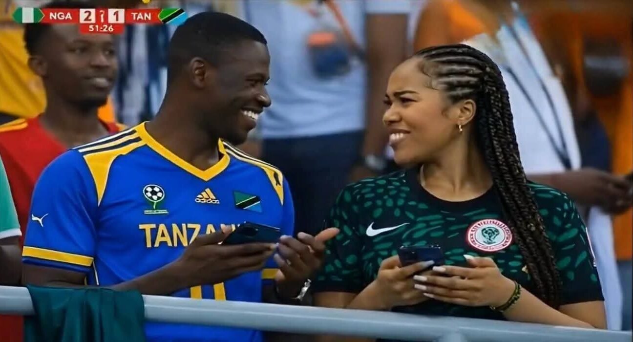 لم يكتفِ المشجع التنزاني بمتابعة ضياع النقاط الثلاث من فريقه، بل قرر أن يسدد “تسديدة عاطفية” تجاه مشجعة نيجيرية كانت ترتدي قميص النسور الأخضر الداكن.
