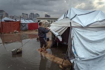 غزة – الأمطار الغزيرة تغرق خيام النازحين وتزيد المخاطر الصحية